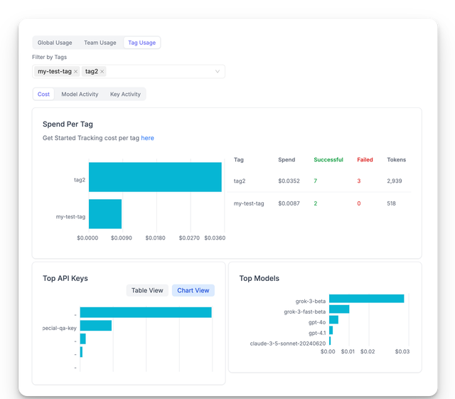 • Search APIs - Native /v1/search endpoint with support for Perplexity, Tavily, Parallel AI, Exa AI, DataforSEO, and Google PSE with cost tracking